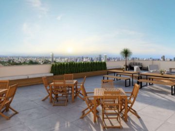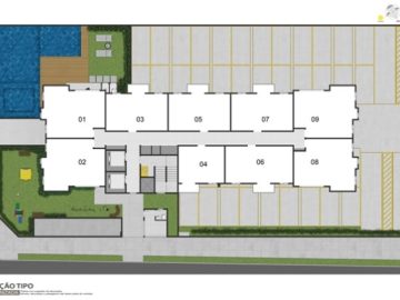 O prédio terá: piscinas adulto e infantil, deck molhado, ofurô, salão de festas, playground, lazer na cobertura com linda vista panorâmica do bairro c/ churrasqueira e solário, portão automático p/ pedestre e outro p/ veículo.