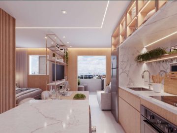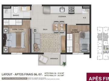 vENH VIVER NO JARDINS ÉVORA . Aptos de 27 a 41 m² de área privativa total (apto + varanda) de 1 e 2 dorms, todos os aptos c/ varanda na sala, piso porcelanato polido em todo o apto, pia, lavatório, soleiras e peitoris em granito, torneiras e registros da marca Deca, materiais hidráulicos da marca Amanco, todos os materiais de primeira qualidade.