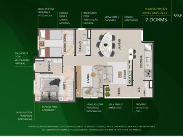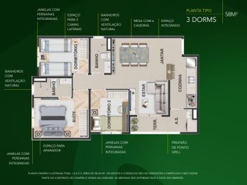3 dormitórios com suíte - 58m² (com opção de sala ampliada)