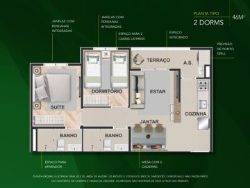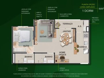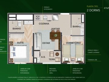2 dormitórios com suíte - 41m² ou 46m² (com opção de sala ampliada)