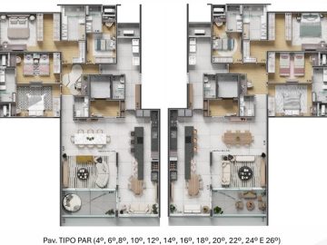 •Plantas únicas: a partir de 201m², incluindo opções de 226m², 250m² e a Penthouse de 422m².