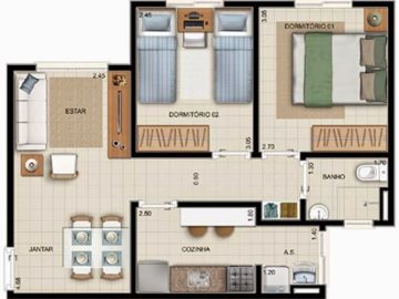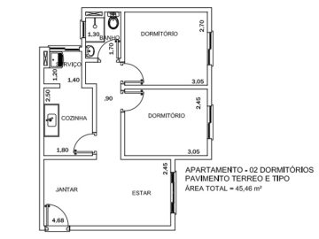 Apartamento para Aluguel com 2 dormitórios, 42m²
